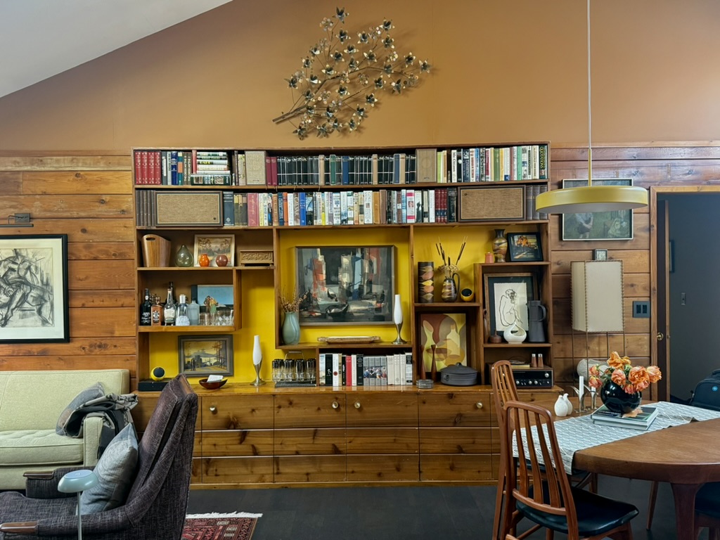 After we did some renovations on the house a few years ago, we invited Carol over to see. She was gracious and appreciative of everything we’d done, especially the preservation of walnut paneling and built-ins, the aqua blue Kohler “Cinderella” tub in the bathroom and the bunkbeds in her son’s room. (Thankfully, on first meeting my husband, she told him the boards on the bench surrounding the house were redwood, which had been obscured by brown, yellow and green paint applied by an interim owner. My husband had them planed and restored to their original beauty.