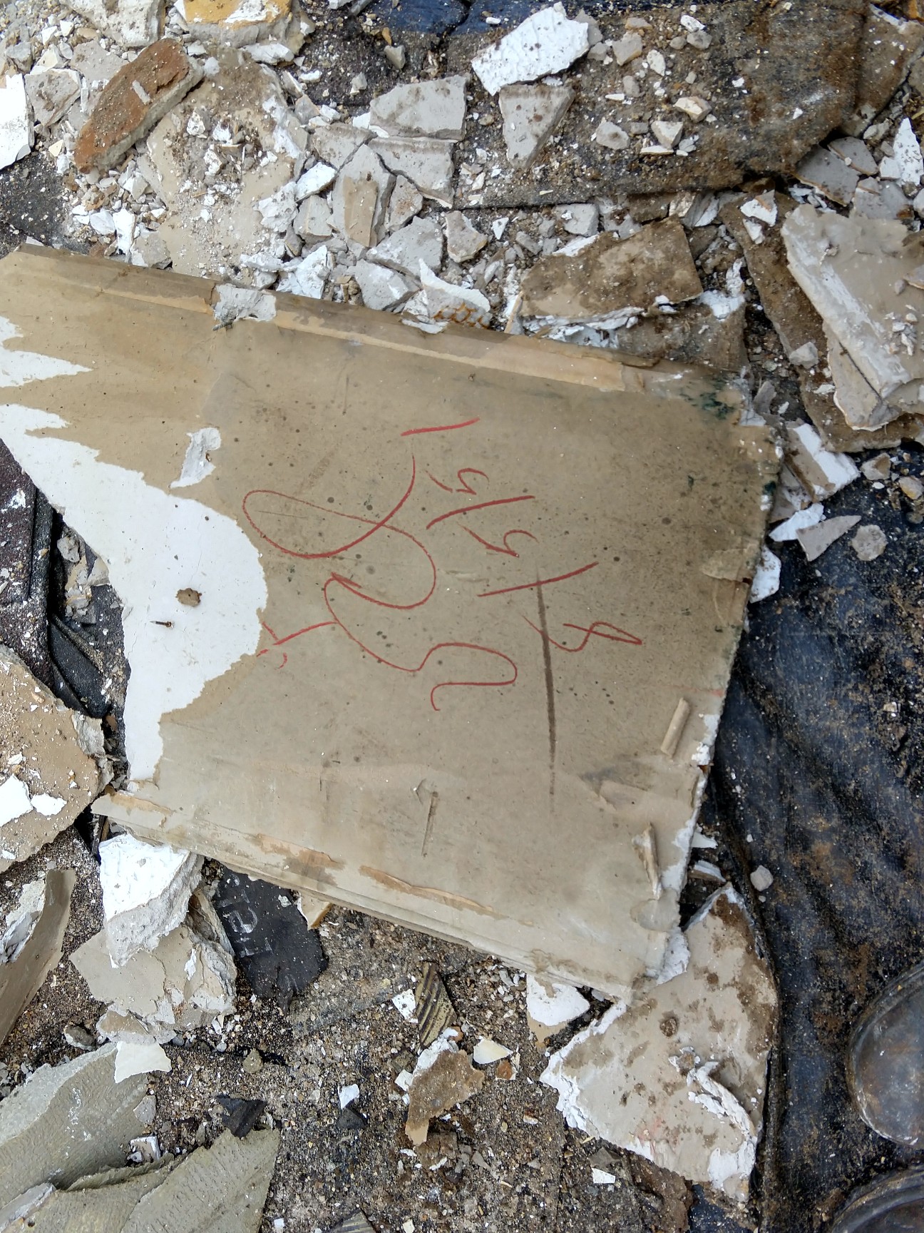 A piece of drywall my husband found in the ceiling when we were renovating. It has Neil’s initials and the date they built the house: 8/5/51