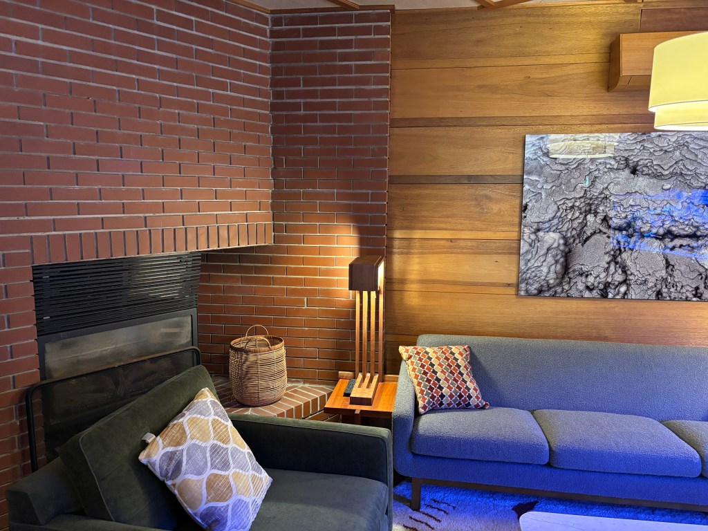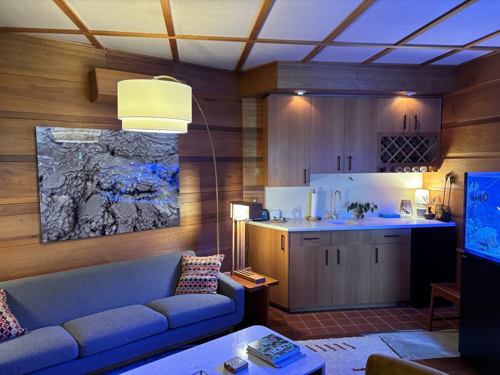 John and Patricia Peterson, who bought the Armstrong House in 1958, found the concrete floors and cypress walls in bad repair; they carpeted the floors and replaced the cypress with mahogany from the Phillipines.