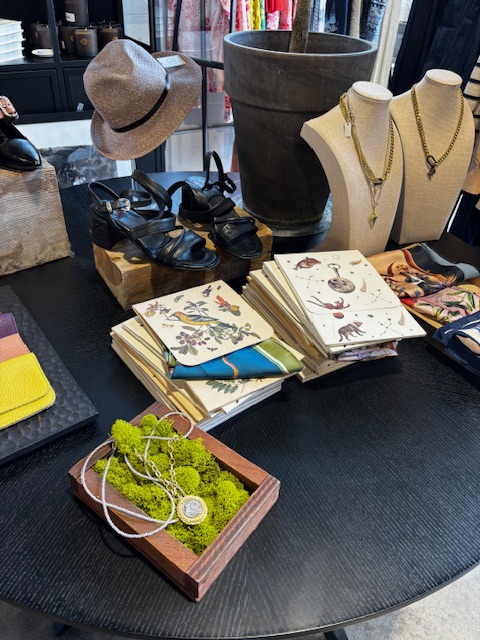 There’s a mix of apparel and footwear for men and women with an emphasis on easy-wearing, accessories, jewelry, home goods and gift items. Visitors will find well-made garments, leather goods, hand-dyed knits, painted scarves and jewelry – each designer a known entity to the shopkeepers.