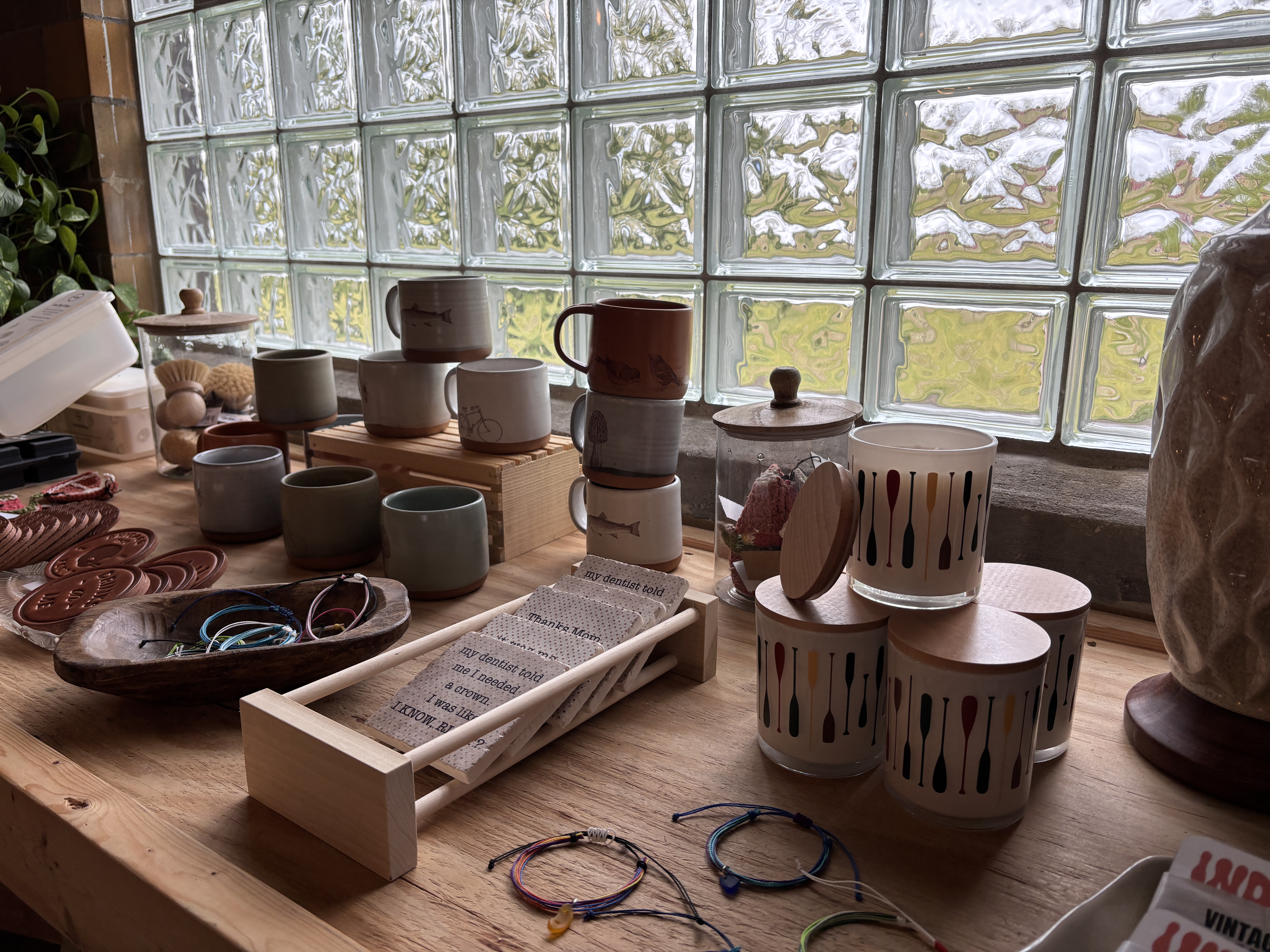 Shopping along 12 in Indiana is getting better all the time. In Beverly Shores, there’s Cat’s Eye, a vintage shop in my favorite midcentury glass office building; Over Yonder gift shop; a small but mighty gift section (jewerly, books, pottery) at The Depot Museum & Gallery (open Fri-Sun); and Goblin & The Grocer also has a nice selection of gifty things, with an emphasis on food and related merchandise.