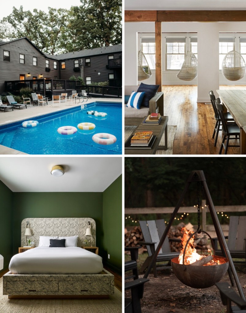 Two other cool area hotels come from The Neighborhood group, which also has hotels in Lincoln Park and Little Italy in Chicago. Over here, you’ll find one in Grand Beach and one in New Buffalo. Both have communal kitchens, screen porches, and firepit/grilling areas. The Grand Beach property (19400 Ravine Dr., New Buffalo), tucked into the woods, has a pool and a basement gameroom/bar. It has 14 suites, two of which sleep 6, and two standalone cottages. New Buffalo (18 W. Merchant St.) has 10 suites and is within walking distance of downtown’s shops and restaurants and the beach.